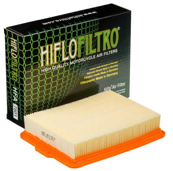 Wysokiej jakości filtr powietrza marki Hiflo. Filtr HFA7801 pasuje do motocykla BMW F850 GS i jest odpowiednikiem oryginalnego filtra OE BMW 13 72 8 561 572
