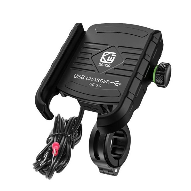 Uniwersalny uchwyt motocyklowy montowany do kierownicy lub na śrubę lusterka.