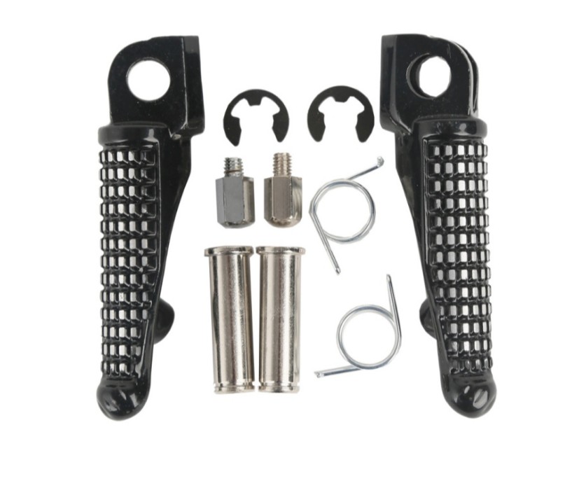 • Wysokiej klasy zestaw podnóżków firmy BIKETEC produkującej części zamiennych do naprawy motocykli, które są doskonałą alternatywą do podzespołów oryginalnych. Są to podnóżki kierowcy(przednie) - komplet lewy + prawy. Zestaw zawiera elementy montażowe takie jak bolce, a także ograniczniki i zabezpieczenia. Kolor: czarny. Pasują do motocykla