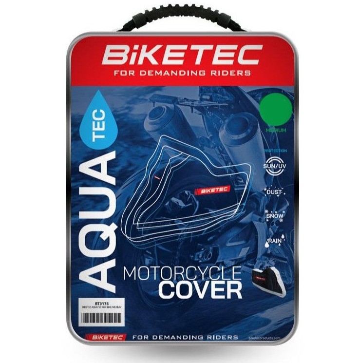 Pokrowiec motocyklowy marki BikeTEC - wykonany z solidnego poliestru PVC 100%, posiada podwójne szwy oraz ściągacz w dolnej części, który utrzymuje pokrowiec zawsze na swoim miejscu. Skutecznie chroni przed deszczem, promieniami słonecznymi oraz zanieczyszczeniami. Można używać także na zewnątrz - pokrowiec jest wodoodporny!