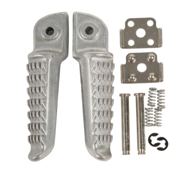 Wysokiej klasy zestaw podnóżków firmy BIKETEC produkującej części zamiennych do naprawy motocykli, które są doskonałą alternatywą do podzespołów oryginalnych. Są to podnóżki pasażera(tylne) - komplet lewy + prawy. W zestawie znbajdują się bolce, sprężyny oraz zabezpieczenia potrzebne do montażu podnóżków. Pasują między innymi do motocykli: