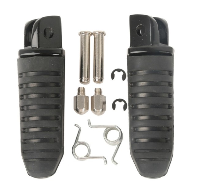 Zestaw podnóżków kierowcy - lewy i prawy. Wysokiej jakości produkt marki Biketec wykonany z aluminium oraz gumy, zawiera wszystkie elementy montażowe takie jak sworznie oraz sprężynki. Prosta instalacja i trwałość podnóżków. Pasują do motocykla Suzuki DL 650 V-STROM 2004-2022.