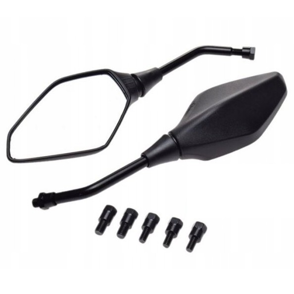 Wysokiej jakości lusterka motocyklowe o sportowej stylistyce i bardzo dobrej jakości wykonania- prezentują się świetnie zarówno na motocyklu sportowym, nakedzie, chopperze czy na skuterze! Bardzo duże szkło w kształcie diamentu oraz cienkie ramki nadają charakteru. Lusterka wykonane z solidnego materiału PVC, przez co są bardziej odporne na drgania!