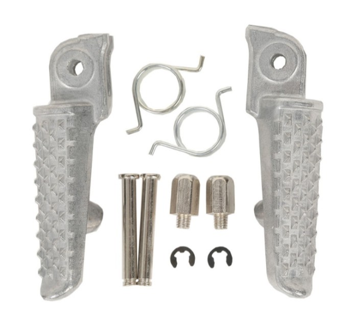 Wysokiej klasy zestaw podnóżków firmy BIKETEC produkującej części zamiennych do naprawy motocykli, które są doskonałą alternatywą do podzespołów oryginalnych. Są to podnóżki kierowcy(przednie) - komplet lewy + prawy wraz z zabezpieczeniami, ogranicznikami i tulejami do montażu.