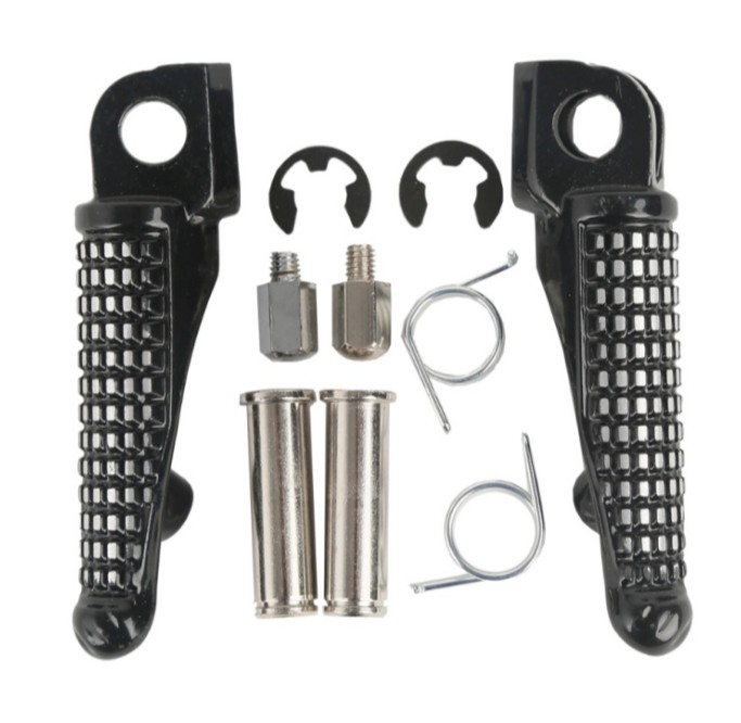 • Wysokiej klasy zestaw podnóżków firmy BIKETEC produkującej części zamiennych do naprawy motocykli, które są doskonałą alternatywą do podzespołów oryginalnych. Są to podnóżki kierowcy(przednie) - komplet lewy + prawy. Zestaw zawiera elementy montażowe takie jak bolce, a także ograniczniki i zabezpieczenia. Kolor: czarny. Pasują do motocykla