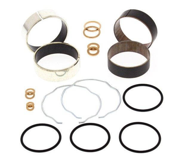 Zestaw naprawczy amortyzatorów motocyklowych(lag) zawiera elementy do naprawy zawieszenia - są to tuleje górne(panewki) oraz dolne, zabezpieczenia uszczelniaczy, o-ringi oraz podkładki miedziane. Zestaw umożliwia przywrócenie prawidłowego funkcjonowania tego istotnego elementu każdego motocykla.