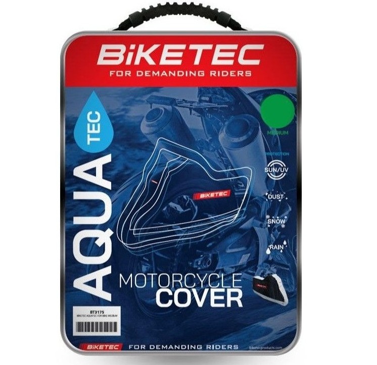 Pokrowiec motocyklowy marki BikeTEC - wykonany z solidnego poliestru PVC 100%, posiada podwójne szwy oraz ściągacz w dolnej części, który utrzymuje pokrowiec zawsze na swoim miejscu. Skutecznie chroni przed deszczem, promieniami słonecznymi oraz zanieczyszczeniami. Można używać także na zewnątrz - pokrowiec jest wodoodporny!