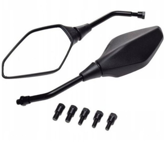 Wysokiej jakości lusterka motocyklowe o sportowej stylistyce i bardzo dobrej jakości wykonania- prezentują się świetnie zarówno na motocyklu sportowym, nakedzie, chopperze czy na skuterze! Bardzo duże szkło w kształcie diamentu oraz cienkie ramki nadają charakteru. Lusterka wykonane z solidnego materiału PVC, przez co są bardziej odporne na drgania!